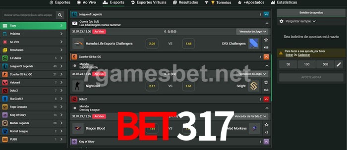 A aposta bet317 oferece aos jogadores a experiência mais conveniente de apostas em eSports!